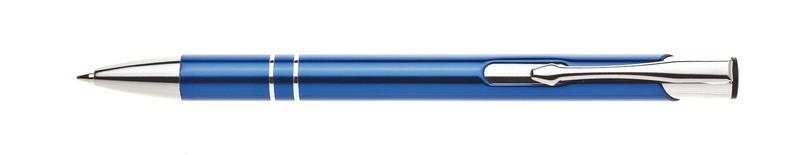 Popis: ORIN je velmi oblíbená hliníková reklamní tužka. Lesklé, modré tělo se dvěma stříbrnými proužky a chromovými doplňky. Velkoobsahová modrá náplň.